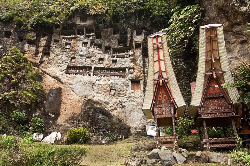 サモシール島の中にある村。この村には450年以上前の3人の王とその血縁者のお墓があり、バタック民族の歴史を学ぶことができます。お墓は長い石からできており、バタック民族の伝統的な彫刻技術によって作られています。